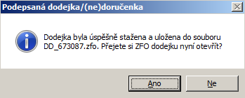 Po stažení dodejky zobrazí aplikace dialogové okno s dotazem, zda si přejete staženou dodejku otevřít. Stisknete-li tlačítko . Otevře se dodejka v programu 602XML Filler.